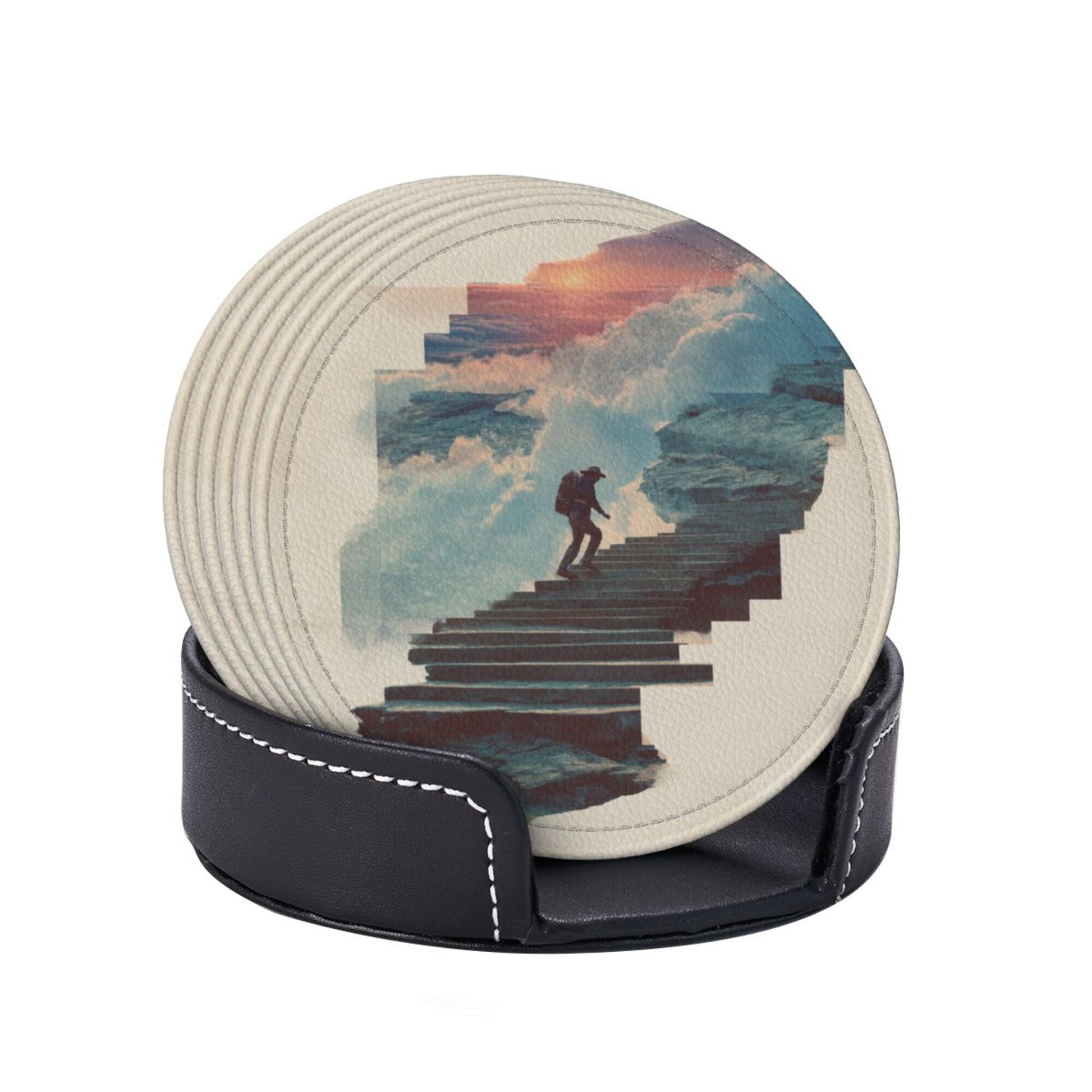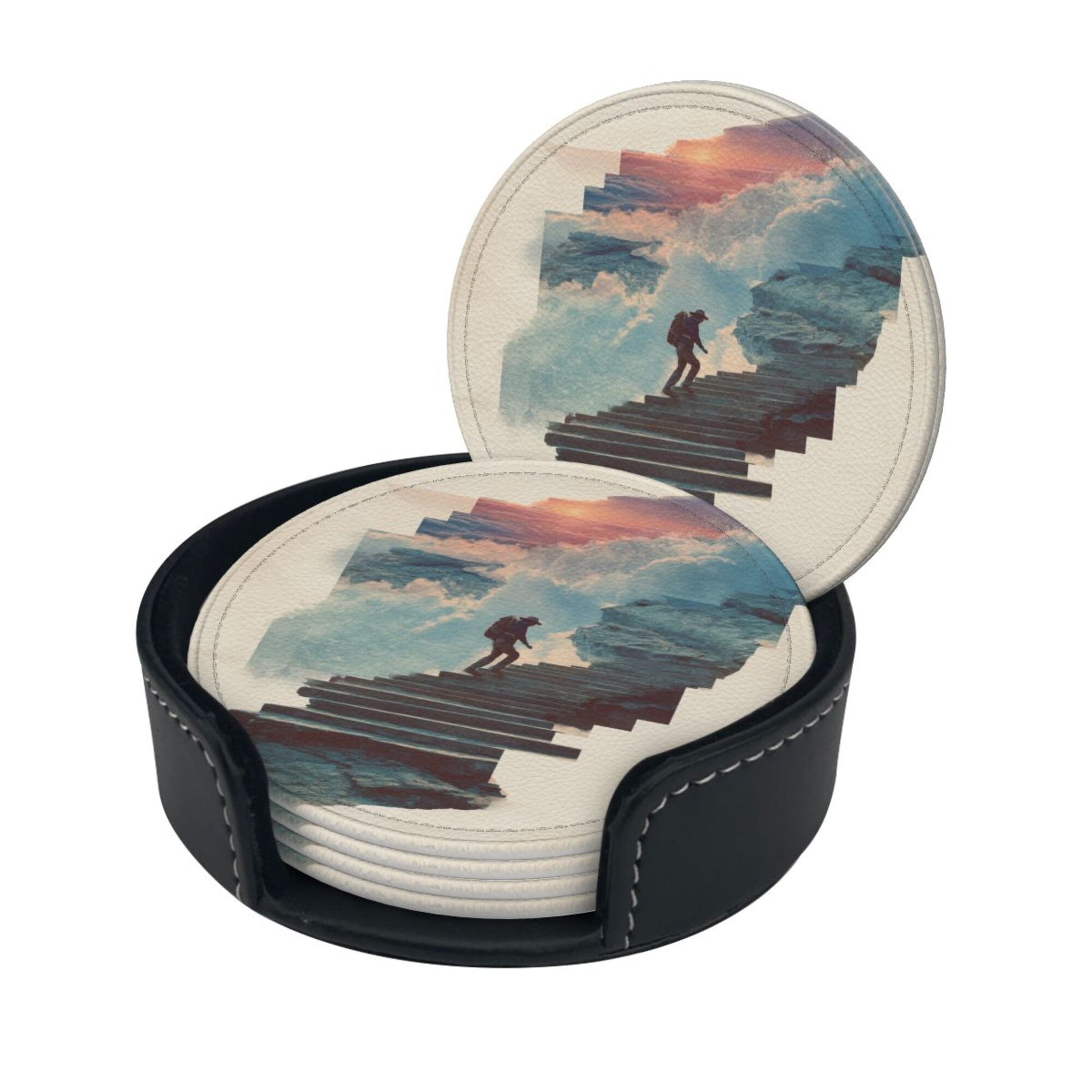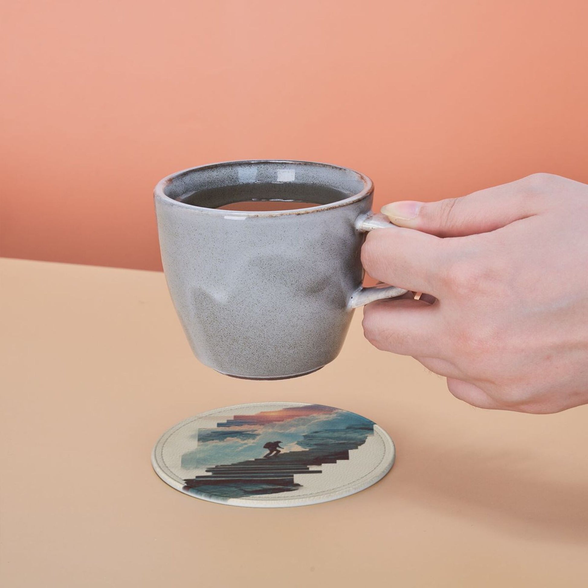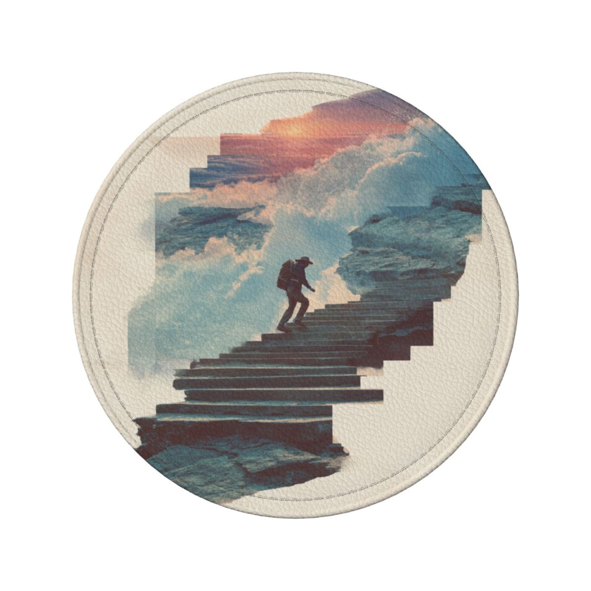 Artistic Pattern:The surface of the coaster presents a picture of “a figure climbing stairs into the sea of clouds and sunlight”. The colors are soft and layered, integrating the poetic nature and the atmosphere of human exploration. Placed on the dining table or bar counter, it is not only a practical utensil but also a small decorative scene, suitable for minimalist, artistic - style home environments, making the placement of daily tableware a display of aesthetics.