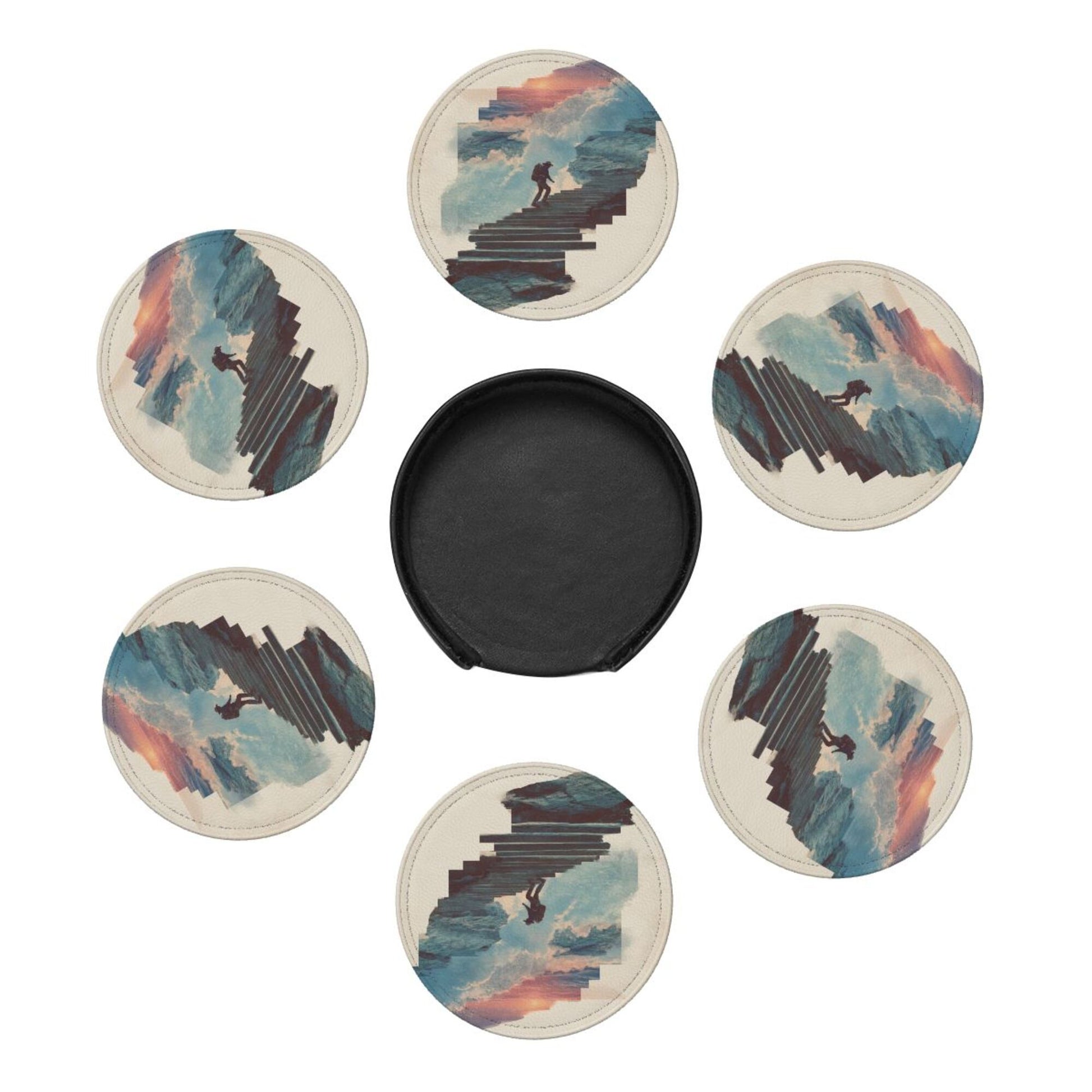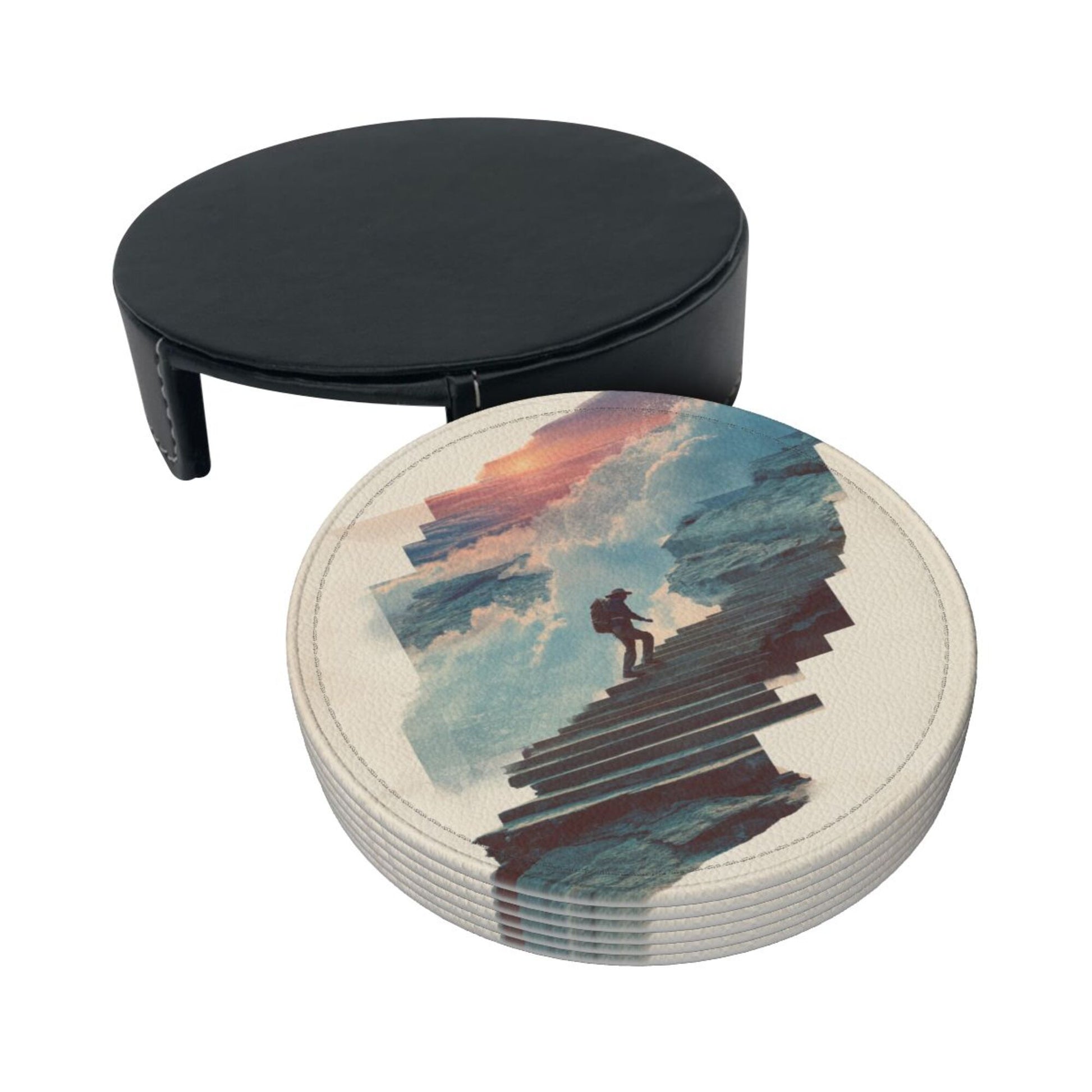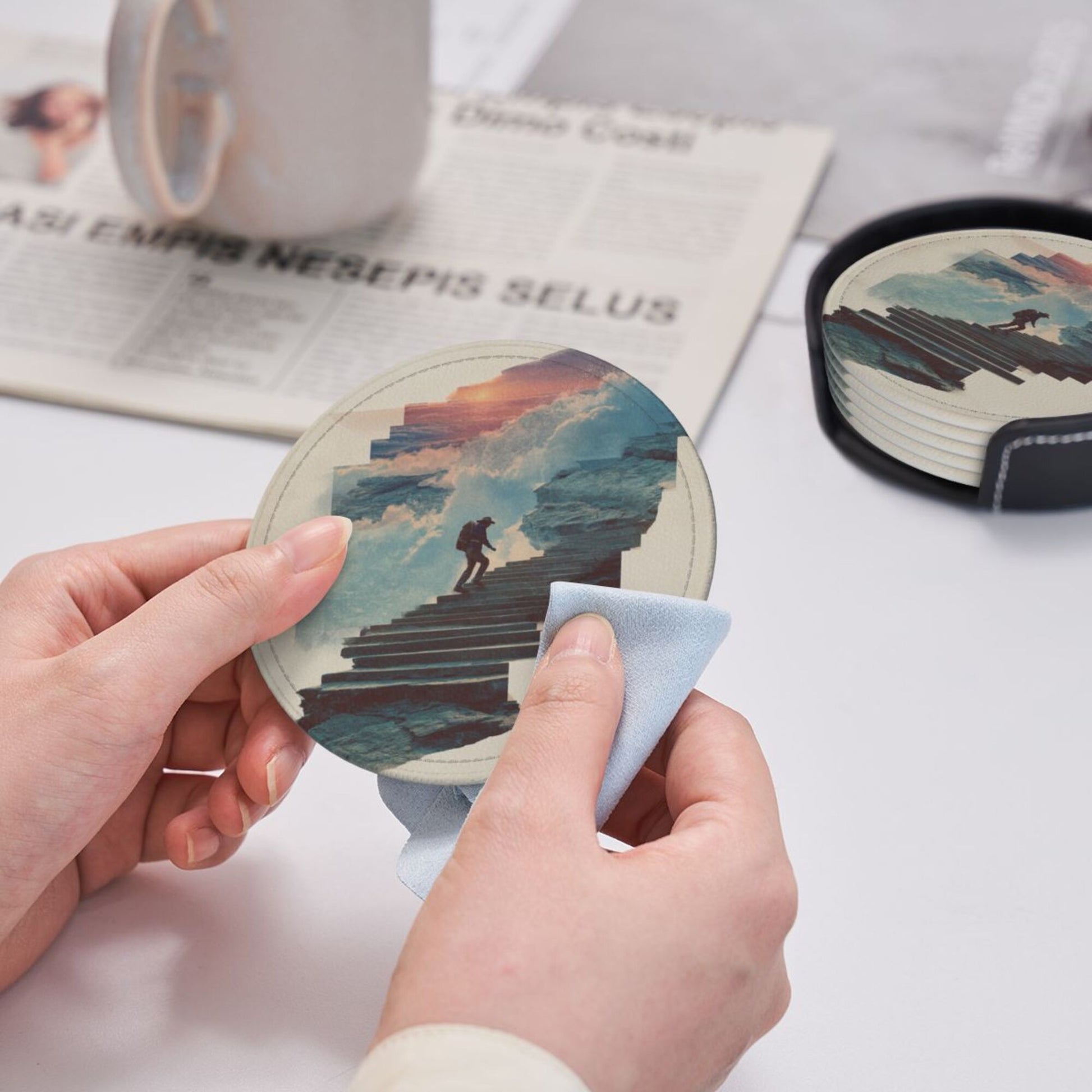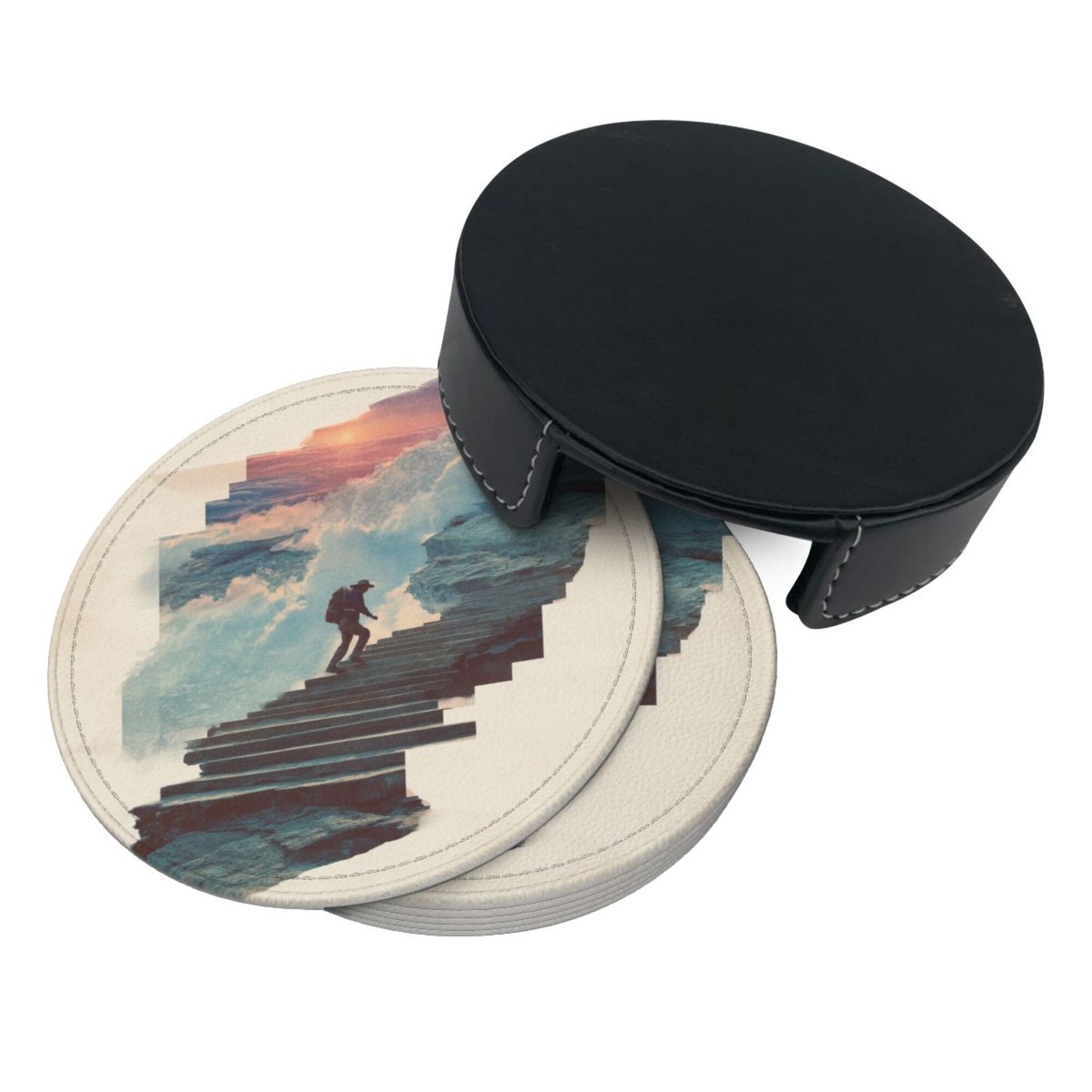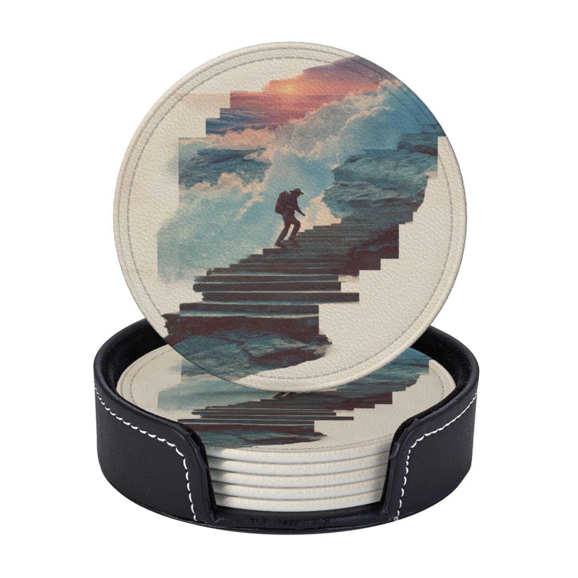 Artistic Pattern:The surface of the coaster presents a picture of “a figure climbing stairs into the sea of clouds and sunlight”. The colors are soft and layered, integrating the poetic nature and the atmosphere of human exploration. Placed on the dining table or bar counter, it is not only a practical utensil but also a small decorative scene, suitable for minimalist, artistic - style home environments, making the placement of daily tableware a display of aesthetics.