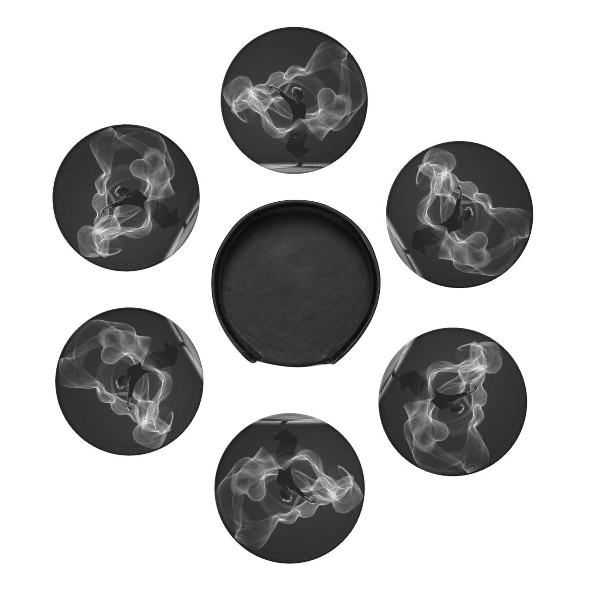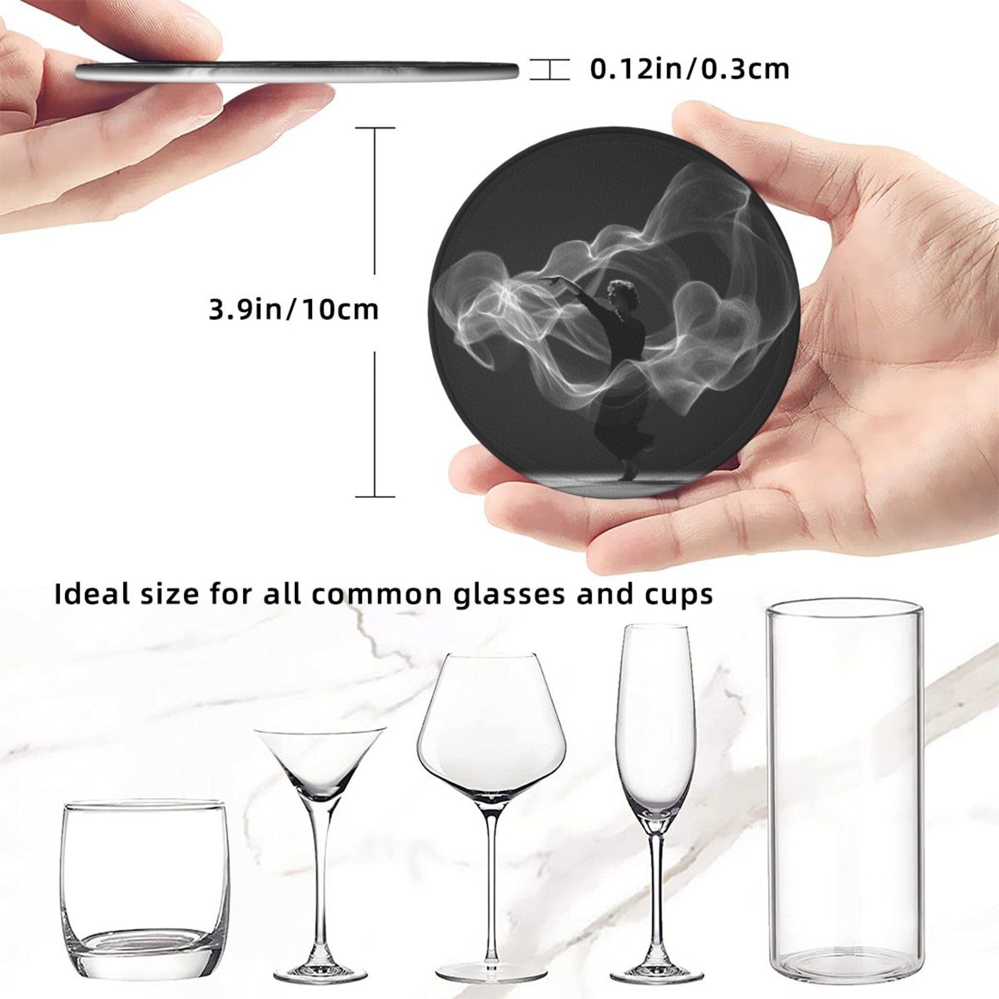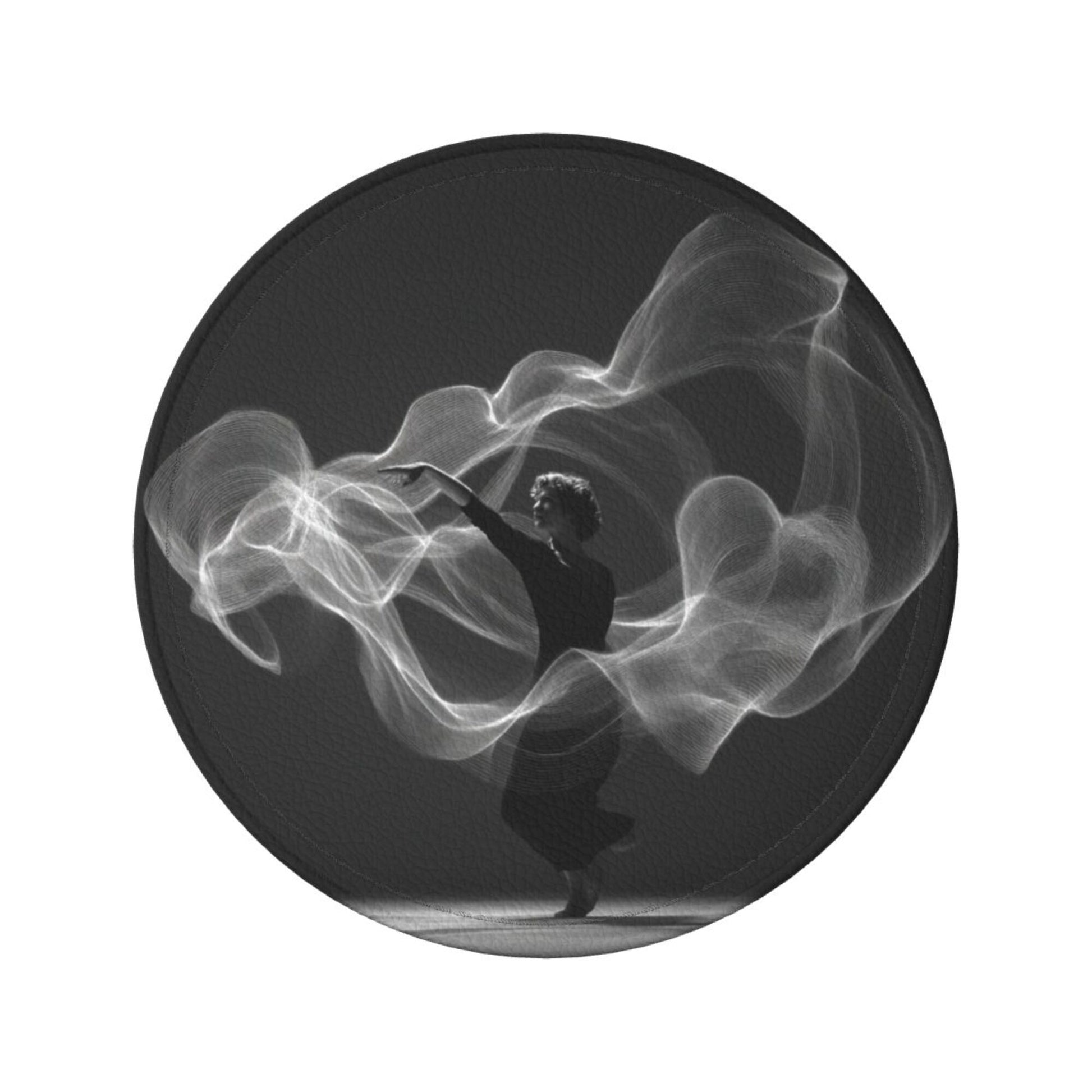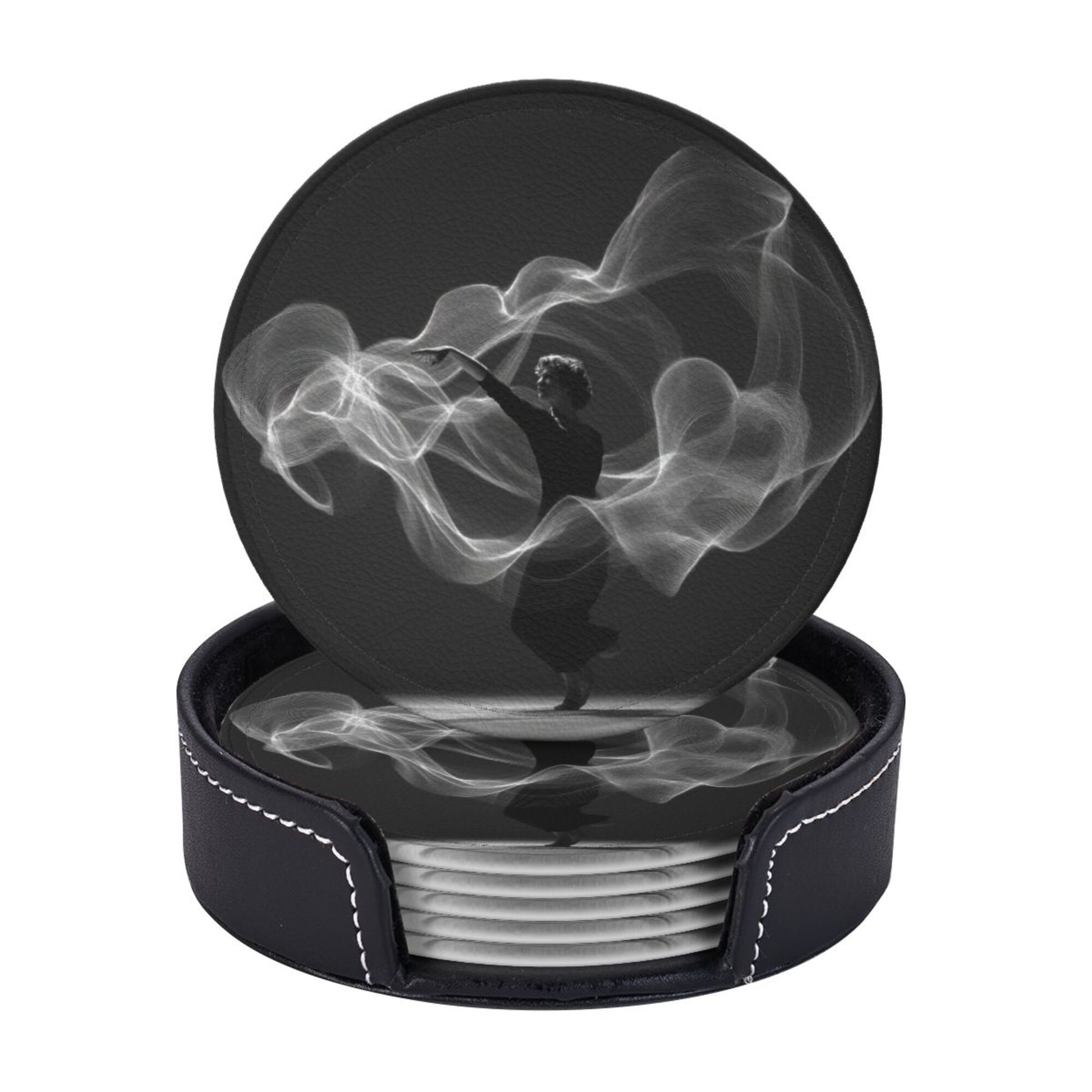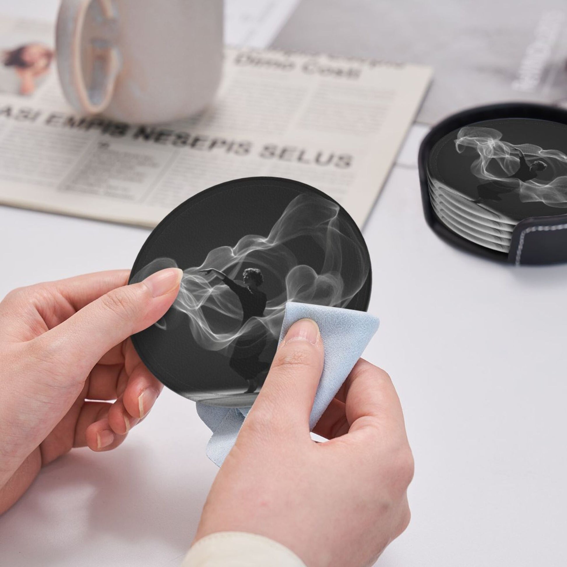Artistic Smoke Dancer Round Leather Coaster Set - Creative Non - Slip Heat - Resistant Coasters (With Storage Tray, Diameter 10cm)