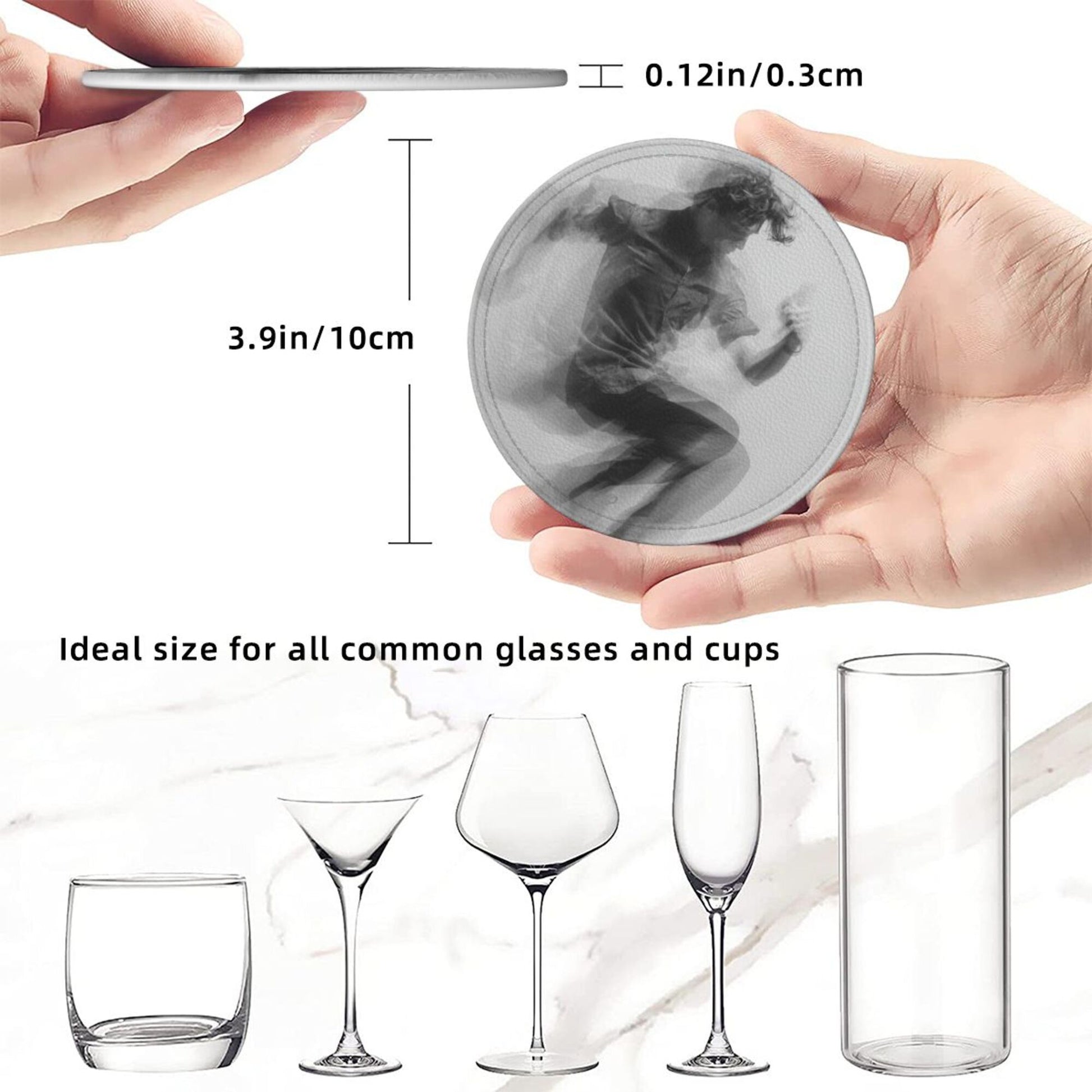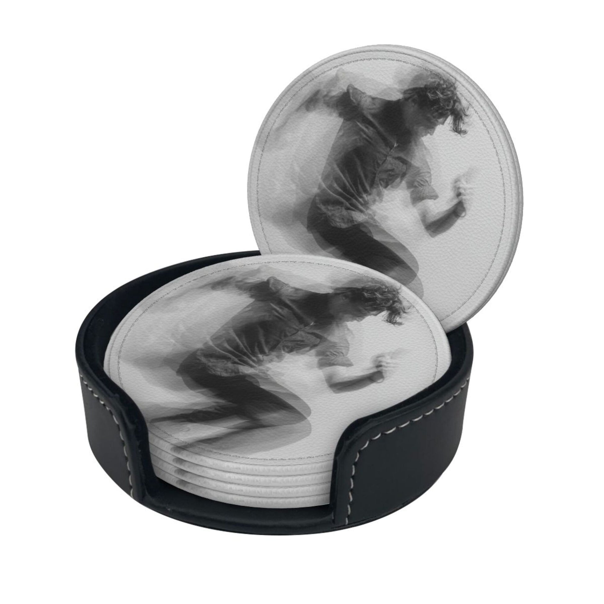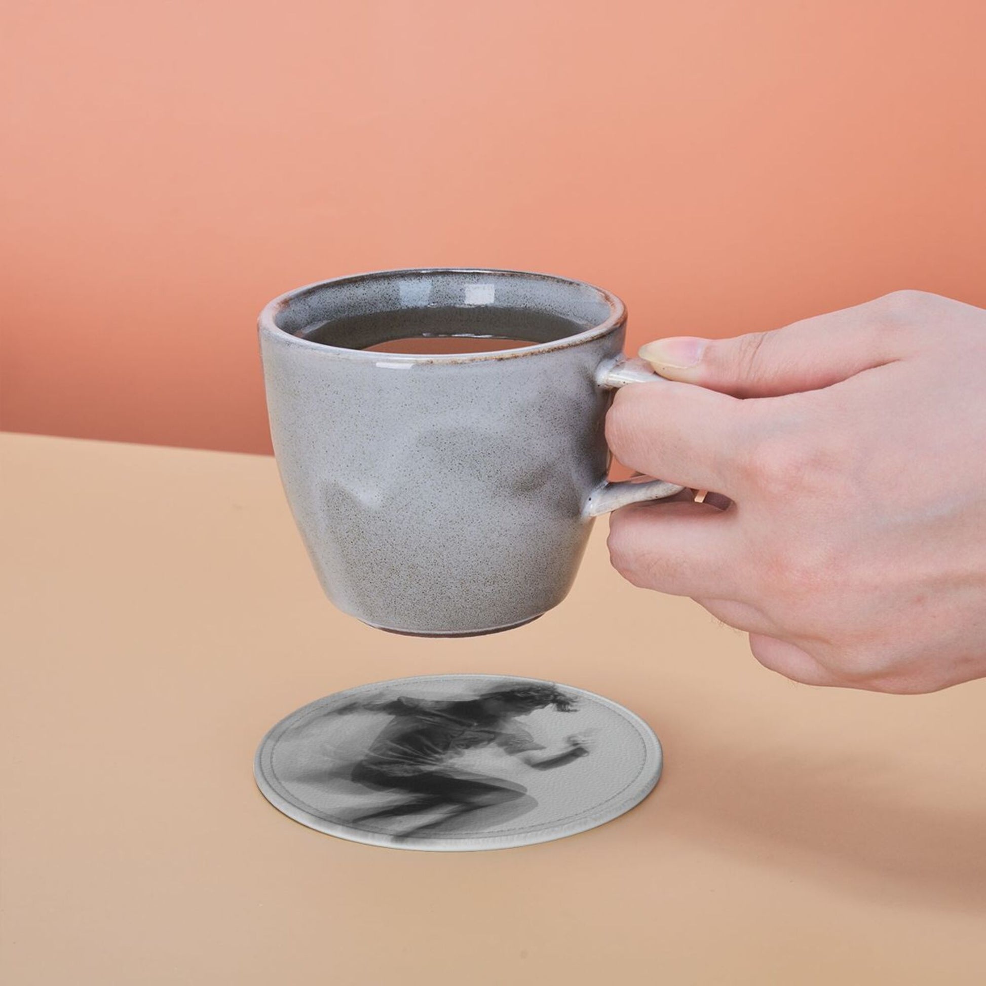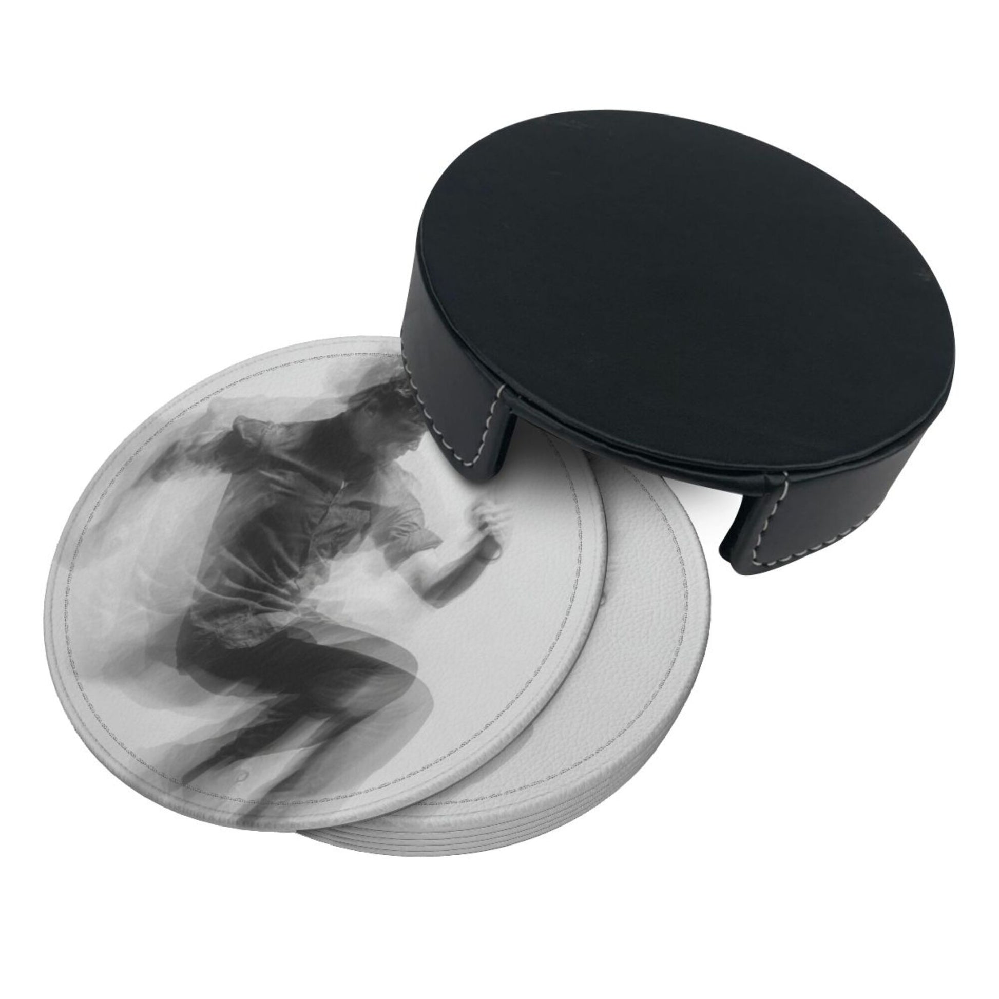 Dynamic Figure Silhouette Round Leather Coaster Set - Creative Non - Slip Heat - Resistant Coasters (With Storage Tray, Diameter 10cm)