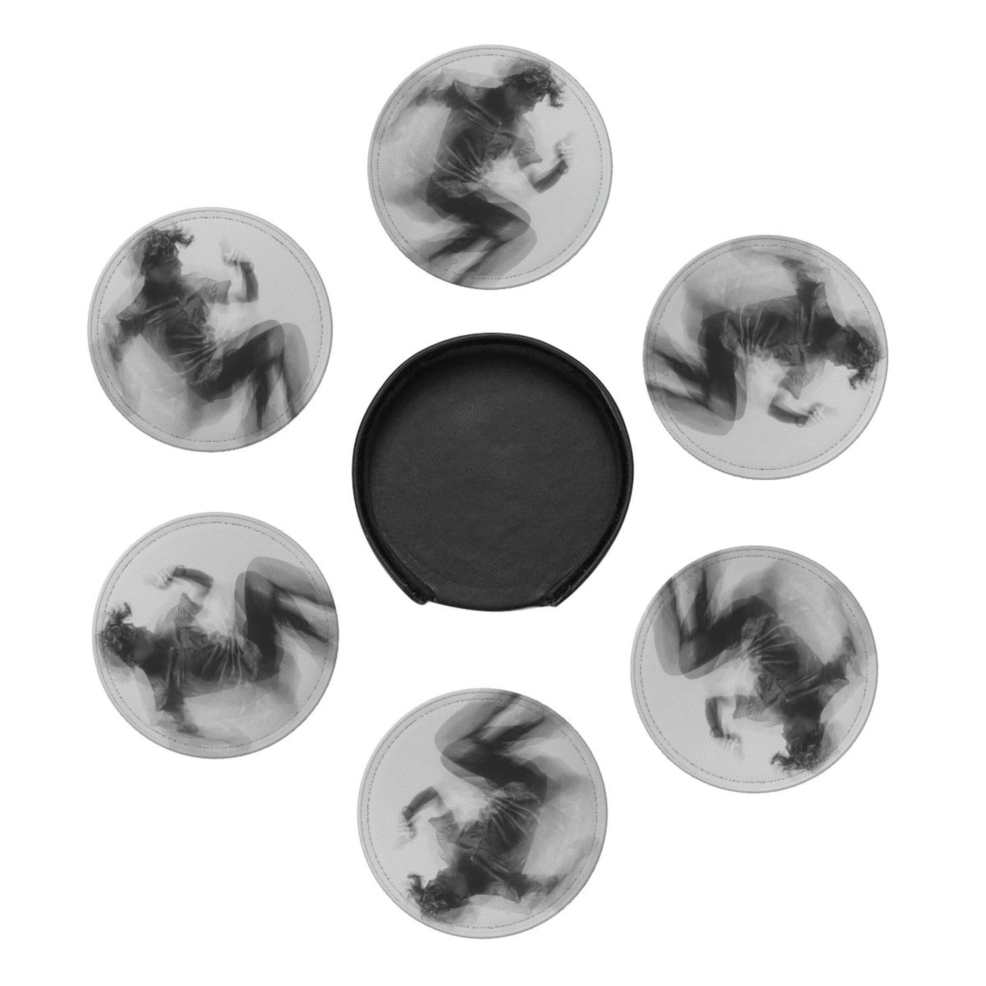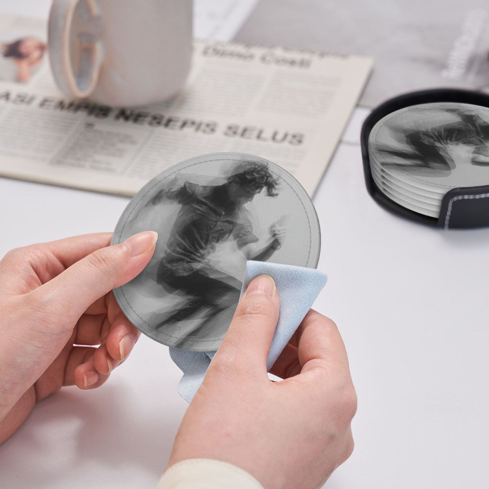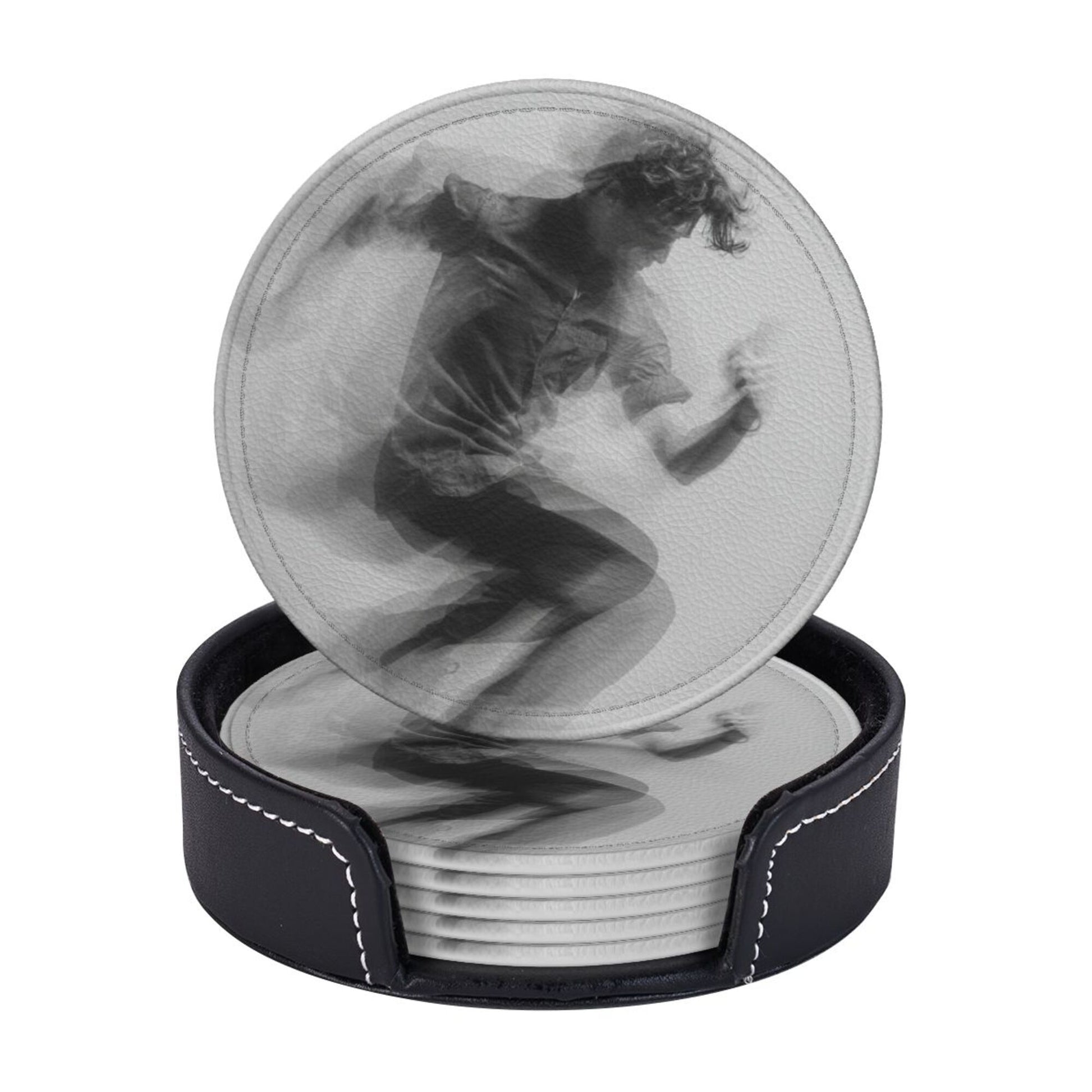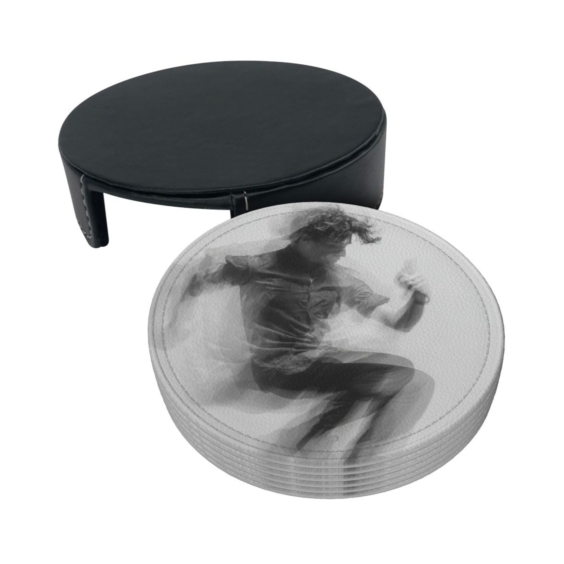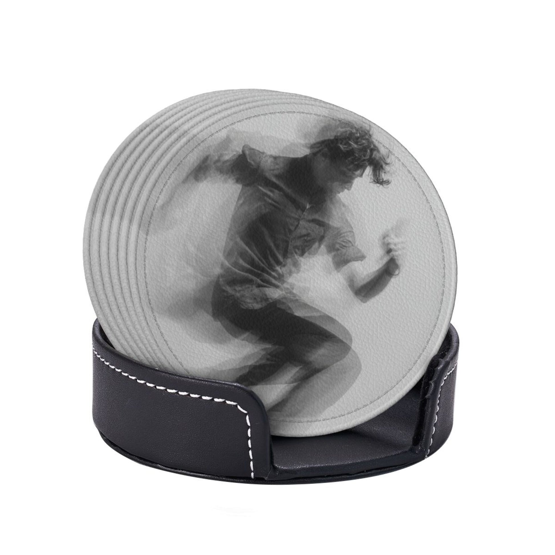 Dynamic Figure Silhouette Round Leather Coaster Set - Creative Non - Slip Heat - Resistant Coasters (With Storage Tray, Diameter 10cm)