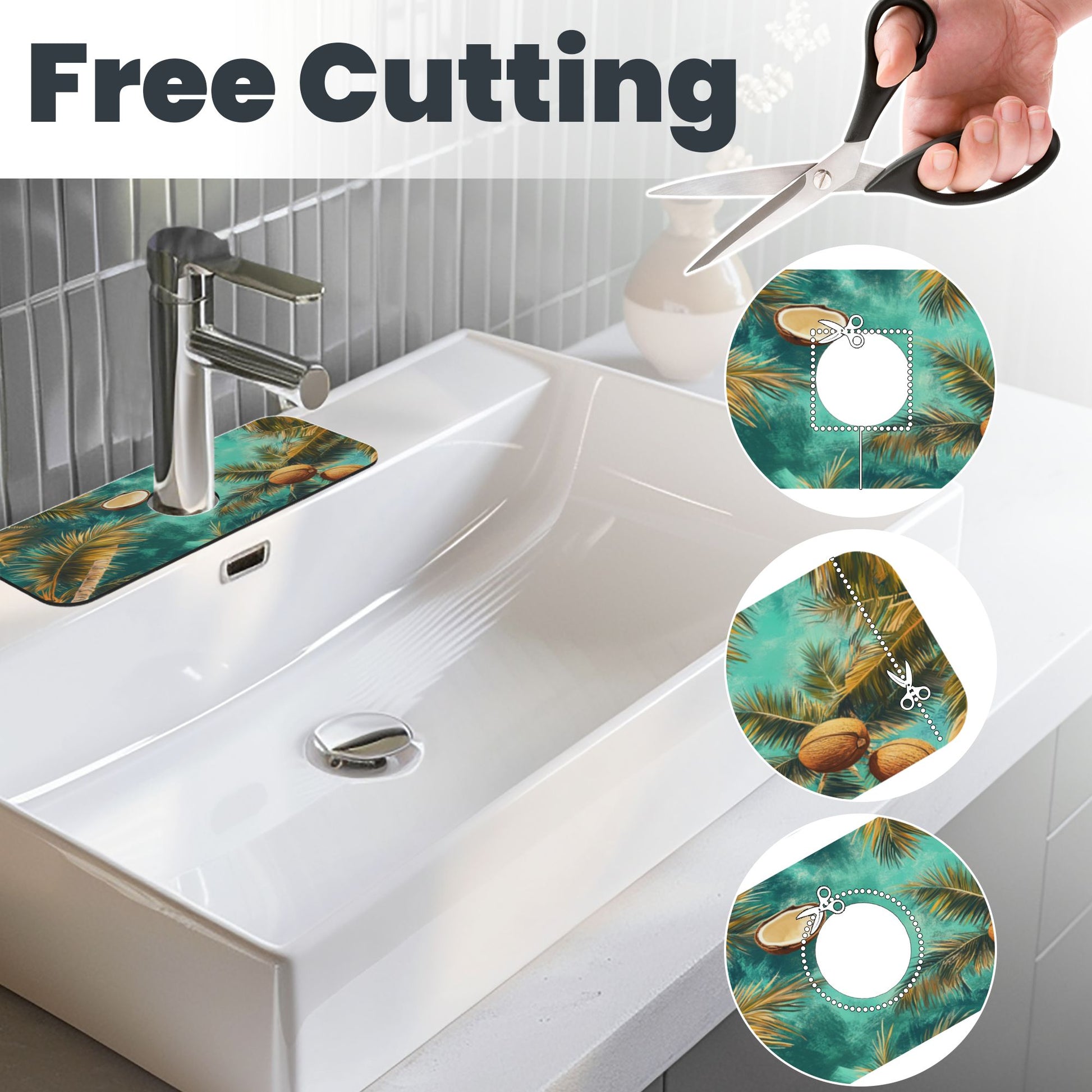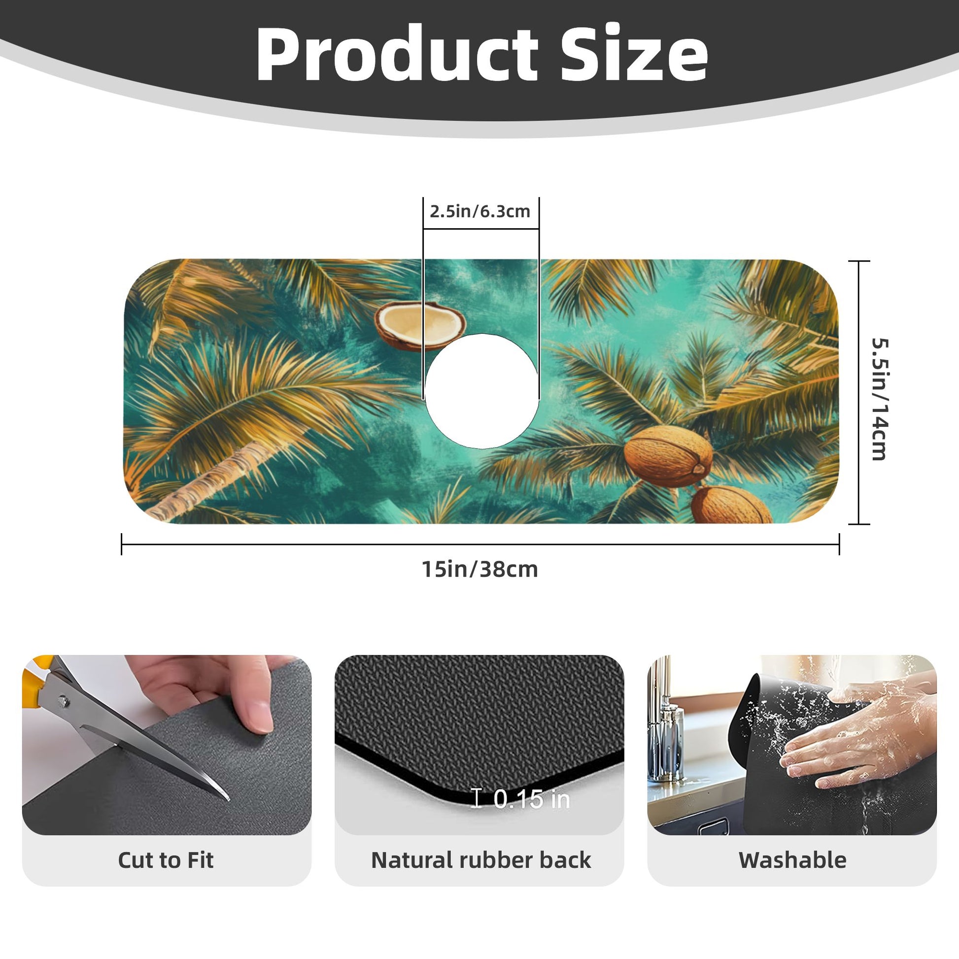 Convenient to Use:Easy to install—simply slip it under the faucet; washable design, reusable after rinsing and drying, eco - friendly and hassle - free. Whether for home decoration or solving sink splashing problems, this coconut grove absorbent mat is a practical and romantic choice, letting you encounter tropical scenery during daily washing and cooking